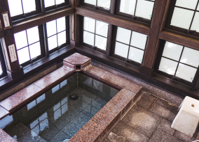 単純アルカリ温泉で、打ち身や捻挫·筋肉痛·疲労回復にも効能有り。大浴場の他にも、家族風呂や露天風呂があり、景色を眺めながらおくつろぎいただける休憩棟もご利用いただけます。日帰り入浴も可能。