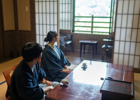 福岡県内で一番きれいな川と指定を受けた清流「星野川」のヤマメ、豊かな山里ならではの山菜や牛肉など、星野村にはすばらしい自然が育んだ美味しい食材が沢山あります。その新鮮な素材を、日本料理の粋を極めた技で調理。星野村ならではの美味を堪能下さい。